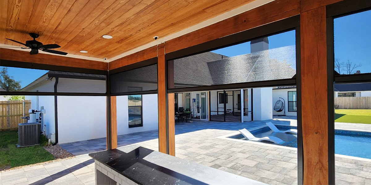They're often installed on lanais, patios, garage openings, or any structure where airflow is important but full enclosure isn't needed. If you've got a pool cage with wide gaps, a patio that gets blasted with sun, or an outdoor kitchen that needs more privacy, retractable screens may be the right solution.